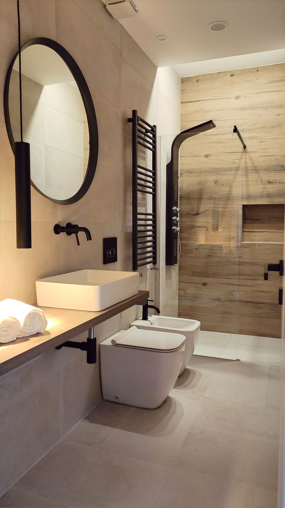 Il bagno è assolutamente unico. Doccia walk-in con colonna idromassaggio, cromoterapia e diffusore Bluetooth e illuminazione multifunzione